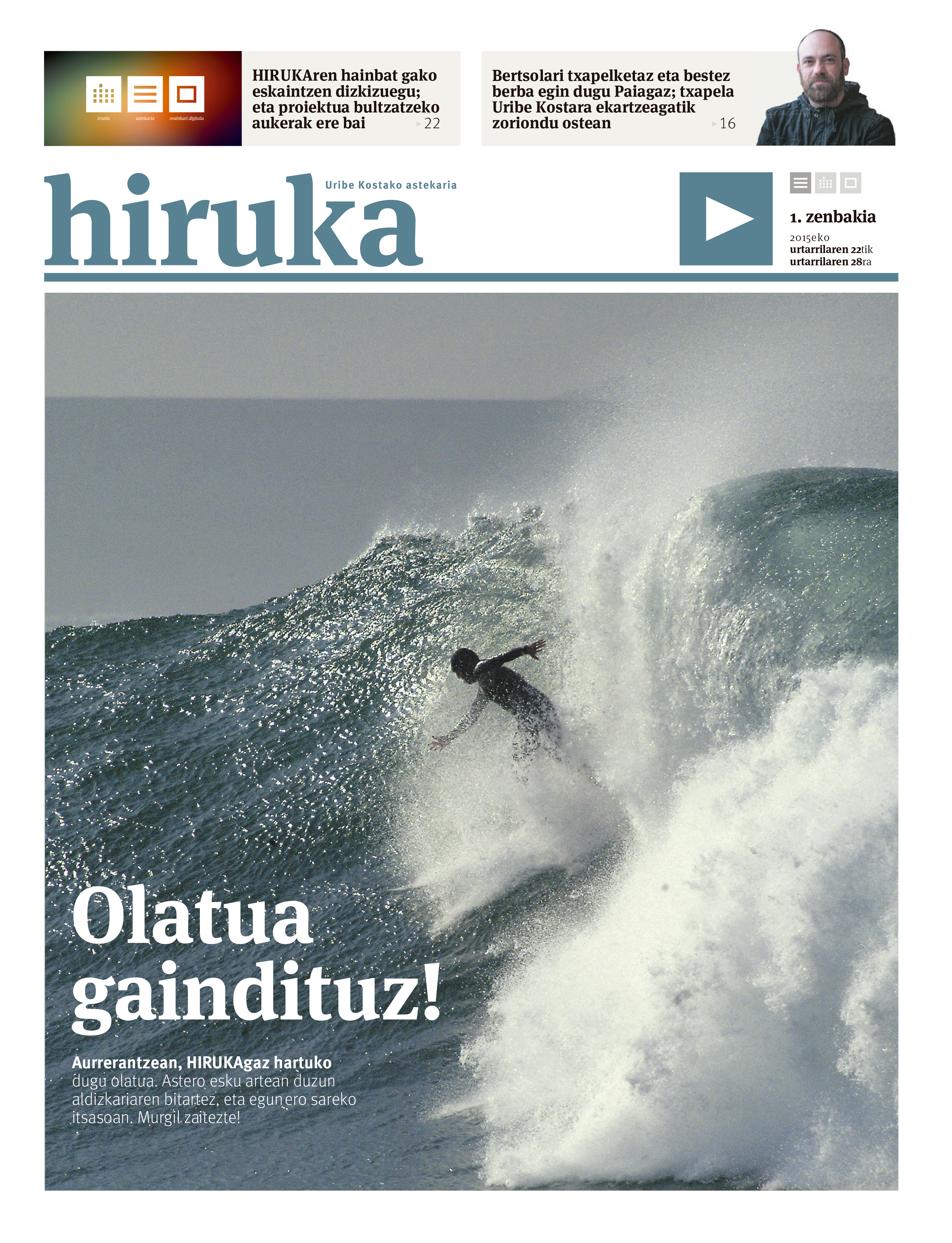 Tabloide formatuan hasi, eta gaur egun 52 orrialdeko aldizkaria izatera pasatu da Hiruka. Webgunea irudi berrira egokitu eta erredakzio taldearekin elkarlan estuan maketatzen dugu zenbaki bakoitza.